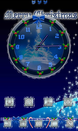 The clock widget shown in the screenshots is "Christmas Glitter Clock 2" in the play store.