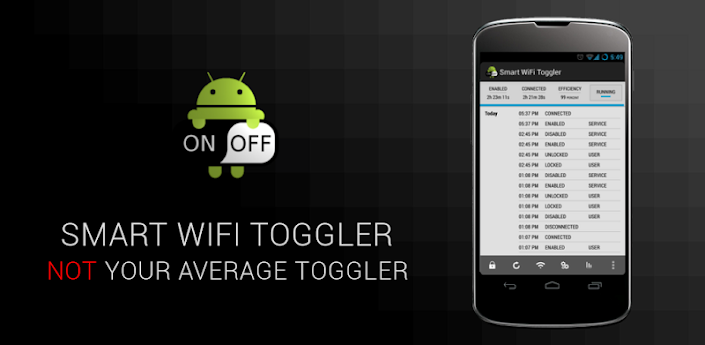 Overview: Smart WiFi Toggler is an application designed to control your phone's WiFi using location based rules. Its aim is to conserve battery and minimize data charges by turning WiFi off when not connected to a network, and turning it on when a known hotspot is present