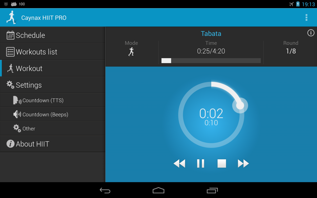 - Built-in sample workout for Tabata.
