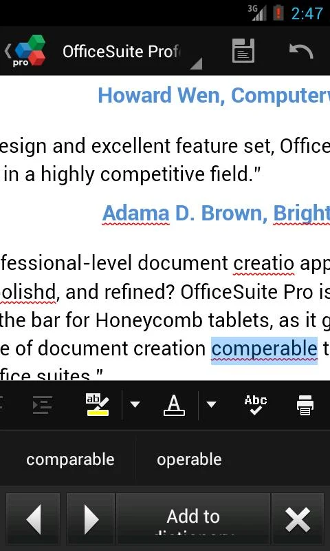 Offered from the developer of the renowned OfficeSuite, QuickSpell provides full integration with the office productivity application.