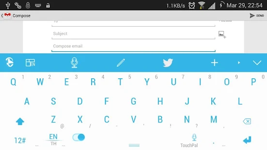 Overview: This is a skin for TouchPal X Keyboard application, it gives a white and blue look with keys without borders. It's a good match for the apps in android kitkat 4.4.