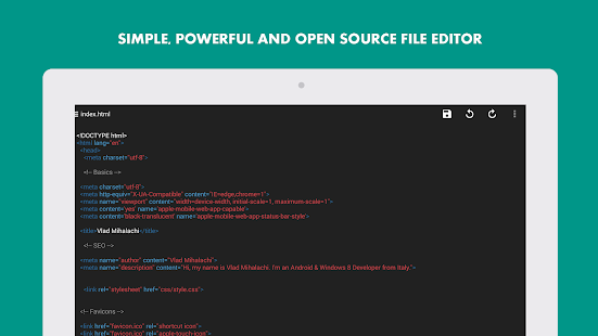 Overview: Simple, Powerful and Open Source Text Editor for Android. Built following the latest Android Guidelines to make the experience the most intuitive on the Store, also on Tablets!