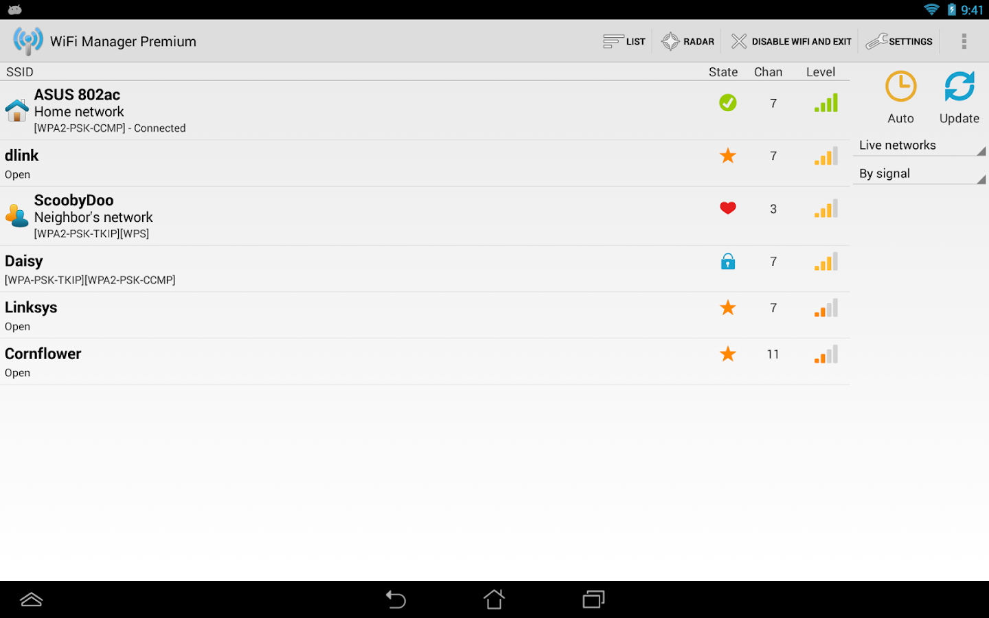 All the other - essential - features are free: the widget with detailed connection info (four sizes, two free themes), scanning and connecting to networks, the network list view, the network signal radar.