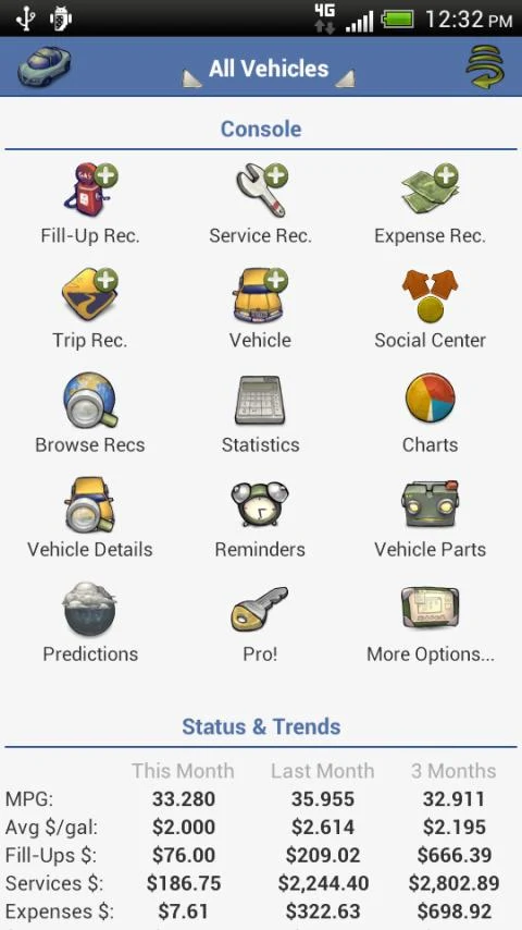 * Home screen shortcuts: New FillUp, New Service, New Expense and New Trip.