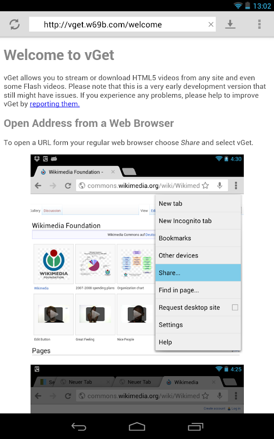 Overview: vGet detects videos embedded in websites and allows to download them, stream them with any installed Player, or play them via DLNA/UPnP or Chromecast directly on a Smart TV.
