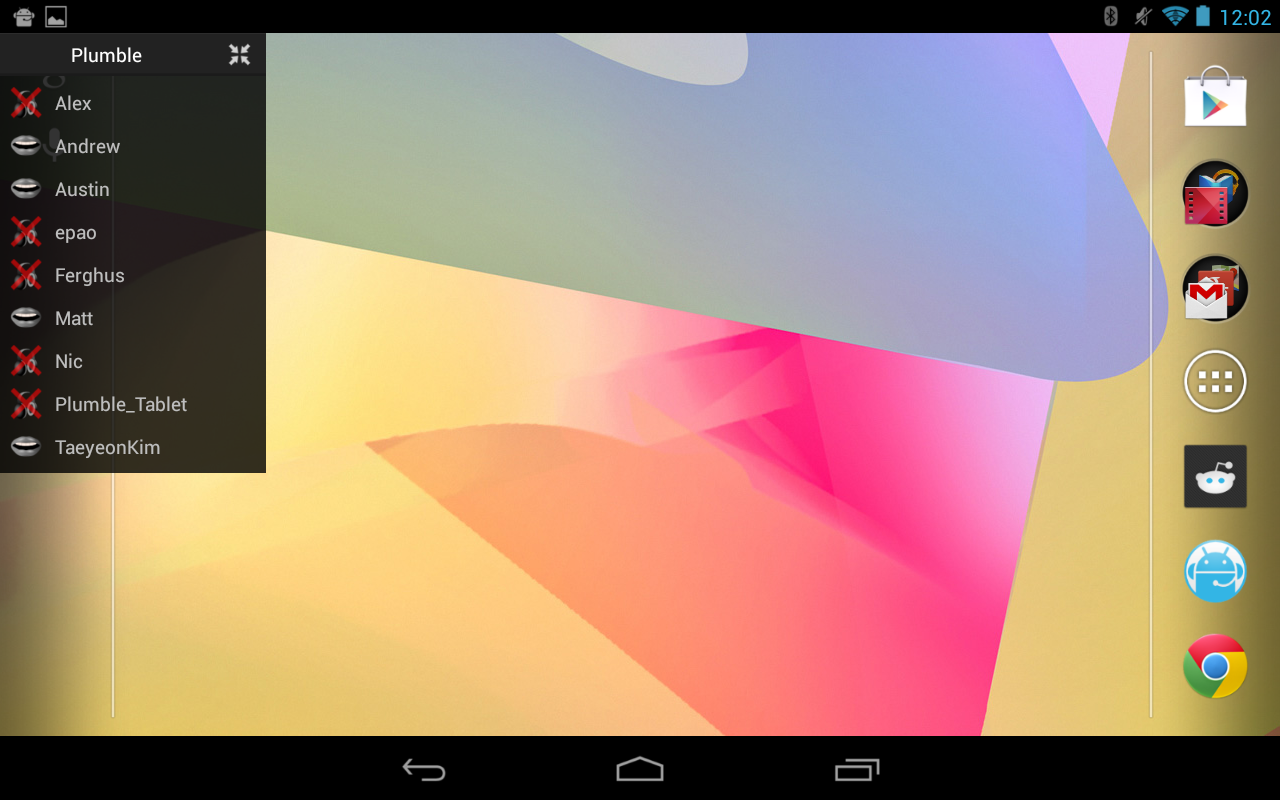 Experience Mumble servers on your Android device to the fullest with Plumble- Android's premier Mumble client. With voice activity and push-to-talk input, communicate with your friends on any Mumble 1.2+ server.